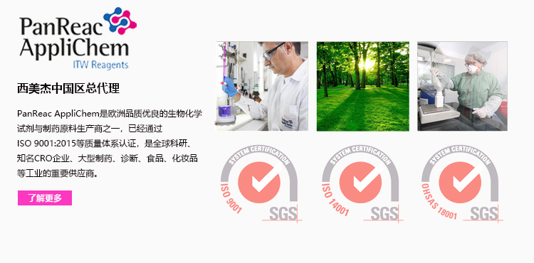 西美杰代理PanReac AppliChem 作為擁有百年歷史的歐洲生物化學試劑與制藥原料生產商,專注提供低內毒素原料,可有效降低生物工藝風險。其產品符合 USP、EP、JP、ChP 等多國藥典標準,具備超低內毒素水平、嚴格質量控制及批次一致性,為科研人員、制藥企業(yè)及培養(yǎng)基生產企業(yè)提供可靠支持,助力保障藥品安全性與工藝穩(wěn)定性。 更多>